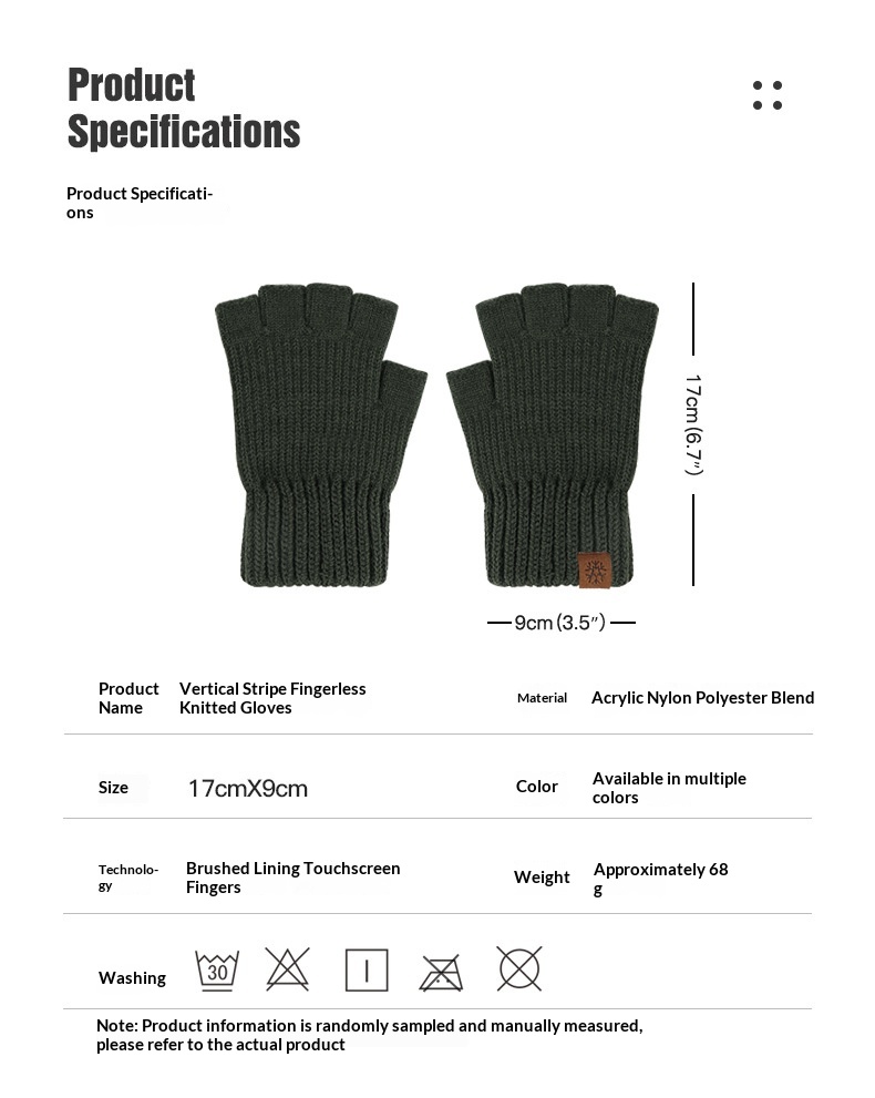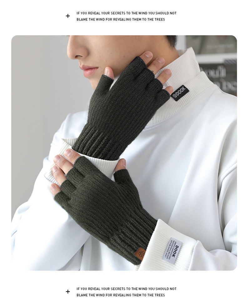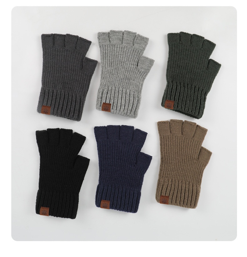 Product information: Fabric Name: Acrylic Colors: Army Green, Coffee, Light Gray, Dark Gray Main Fabric Composition: Acrylic Size: One Size Fits All Features: Touchscreen Compatible, Warm, Windproof Suitable Season: Winter Style: Half-Finger Gloves Design Style: Original Design