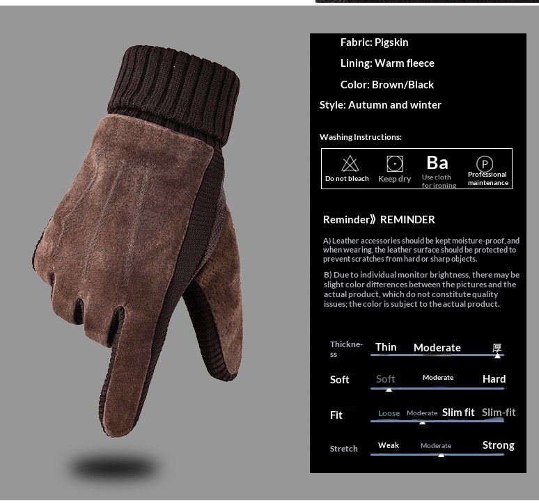 Product information: Fabric: Pigskin Color: Brown, Black Size: One Size Fits All Function: Warmth-Keeping Applicable Season: Winter Style: Five-Finger Gloves Design: Minimalist Style